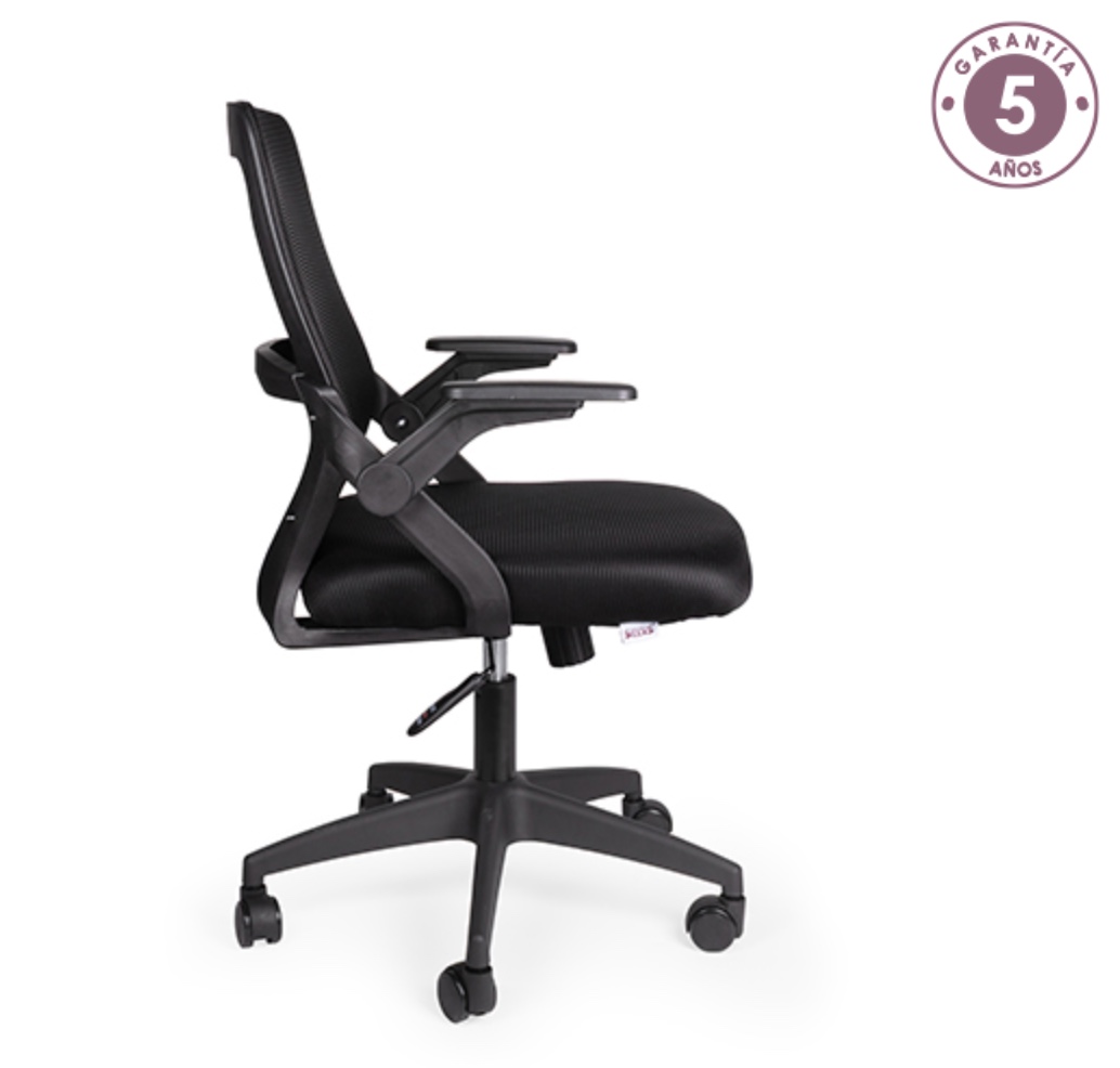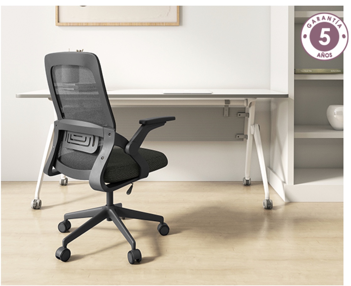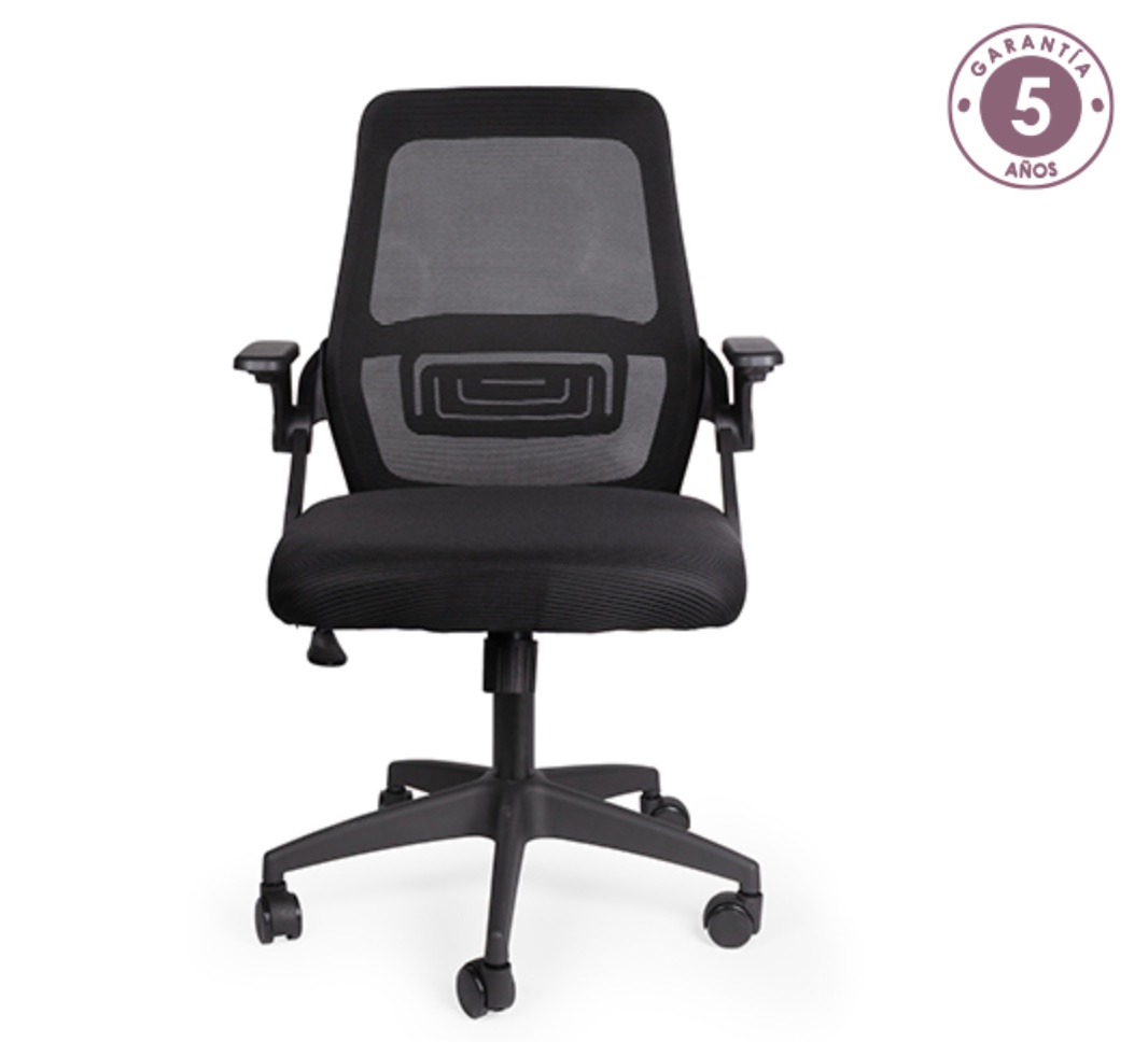 Tapiz: respaldo de malla y asiento en tela miecroespacial color negro.
