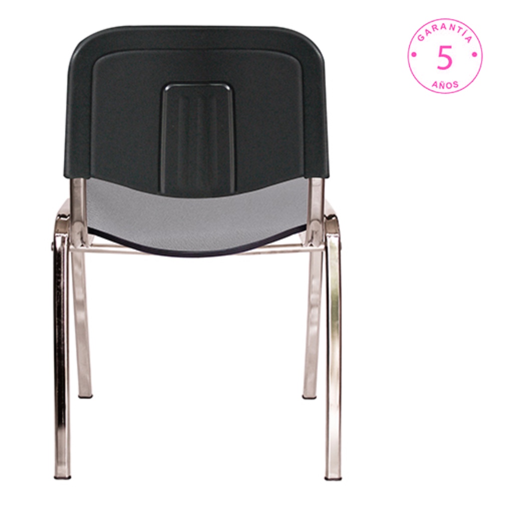 Estructura: De acero tubular ovalado de 30 x 15 mm, calibre 16; travesaños de acero tubular redondo de 19 mm, calibre 16 y asiento y respaldo de acero tubular ovalado de 30 X 15 mm, calibre 16 con terminado en cromo.