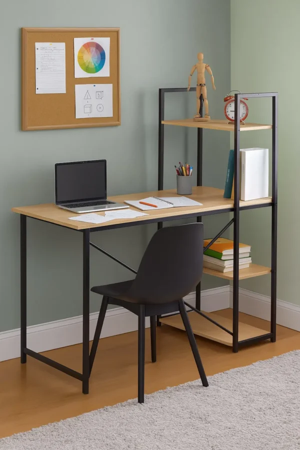 Con líneas limpias y una estética que combina la solidez industrial con la elegancia minimalista, este escritorio añade un toque contemporáneo y profesional a cualquier habitación. Sus materiales duraderos y acabados de alta calidad aseguran una pieza robusta que no solo se ve bien, sino que está construida para resistir el uso diario y acompañarte durante años.