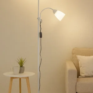 Toda la lámpara de pie está hecha de metal de alta calidad. Pantalla de material de PVC, la distribución de la luz es uniforme, la transmisión de la luz es 3 veces mayor que la del plástico ordinario, mejor protección para los ojos, durabilidad a largo plazo. Poste de luz de hardware de alta calidad, después del proceso de pintura a alta temperatura, no cambia de color, es duradero. La manguera de metal de la lámpara secundaria está hecha de manguera de alta calidad y el ángulo de irradiación se puede ajustar 360 grados, lo que es flexible y versátil. Base ponderada ABS, el chasis tiene buena adsorción, cerca del suelo, resistente al desgaste, no raya el suelo, seguro y confiable. La base pesada y bien equilibrada no se vuelca fácilmente y es segura para sus mascotas y niños. Esta es una lámpara de pie estable.