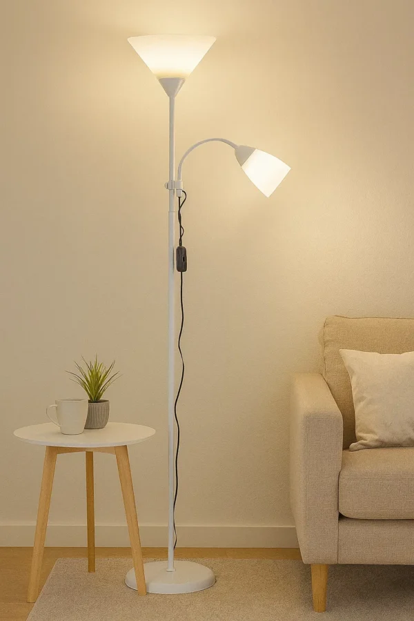 “Transforma la iluminación de tu hogar con la lámpara de pie Ona. Sus líneas simples y sofisticadas, combinadas con un versátil acabado blanco y una pantalla blanca ligera, la convierten en el complemento ideal para una estética moderna y contemporánea. Disfruta de una luz acogedora y funcional en tu sala de estar, dormitorio o comedor, elevando instantáneamente el ambiente de cualquier rincón.”