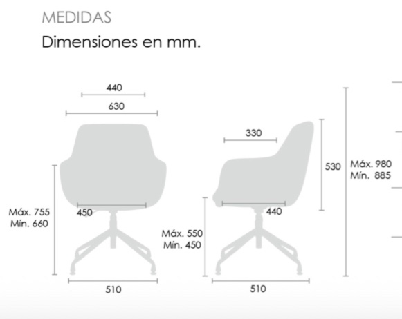 | Altura asiento | Máx. 550 mm | Mín. 450 mm |