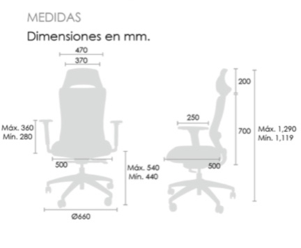 | Altura asiento | Máx. 540 mm | Mín. 440 mm |