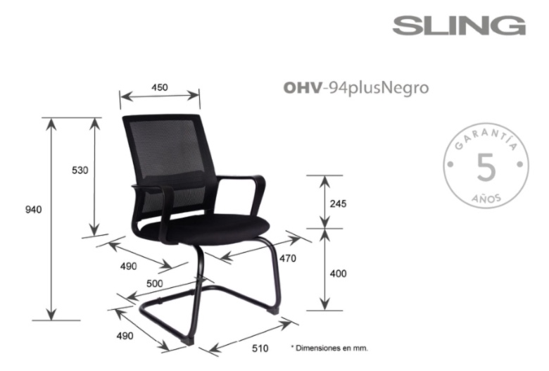 Silla Sling OHV-94 Plus Negro (Juego de 3 Sillas)