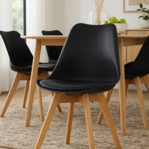 Diseño minimalista y moderno que eleva cualquier espacio. Estas sillas combinan una estructura de madera resistente con un tapizado en cuero sintético suave al tacto, ofreciendo comodidad y estilo en cada detalle. Perfectas para reuniones familiares o cenas con amigos, aportan un toque sofisticado y contemporáneo a tu hogar.